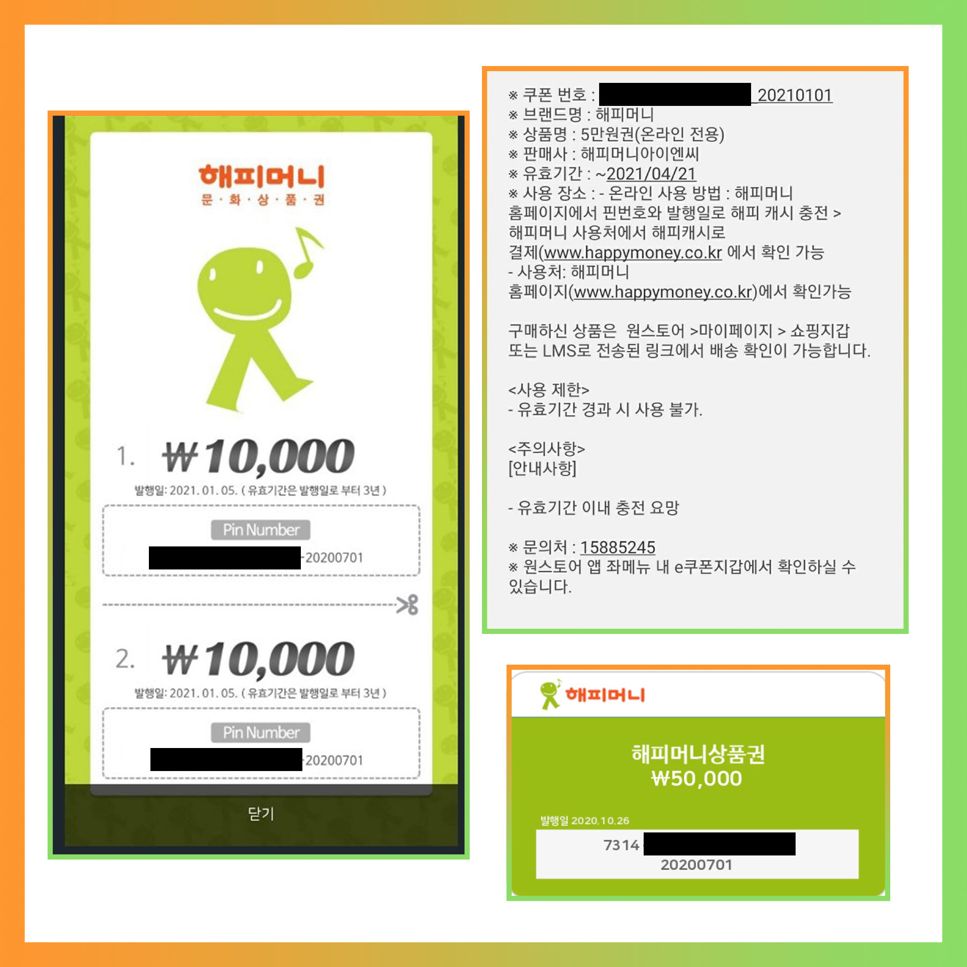 | 해피머니상품권 온라인/오프라인 사용처 (0) | 2021.01.21 |