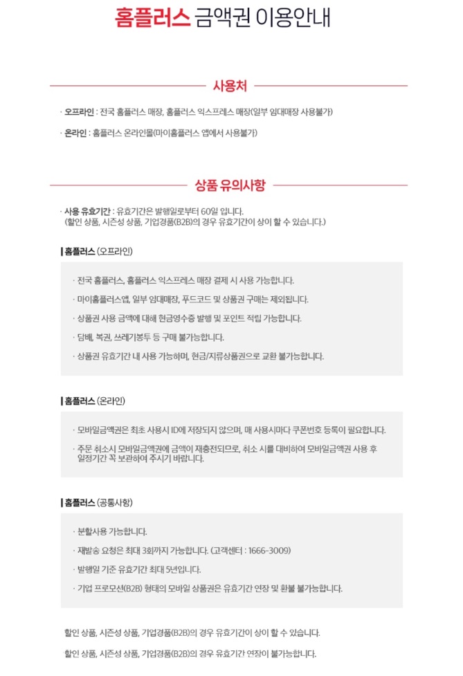 더 자세한 홈플러스 금액권 이용안내는 하기 이미지를 참고해주세요!