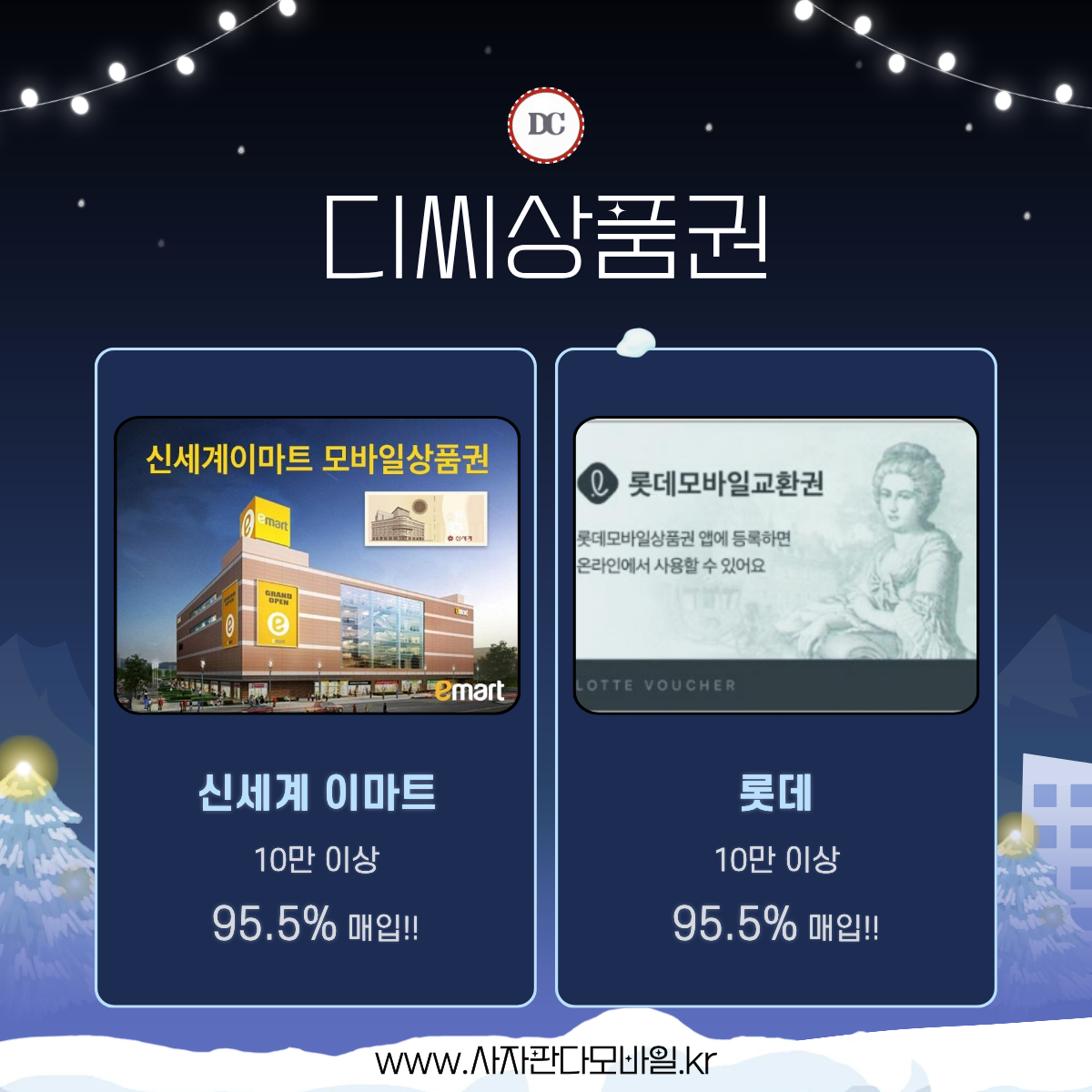 모바일 신세계(이마트 교환) / 롯데상품권의 매입 단가가 새롭게 조정되었습니다.